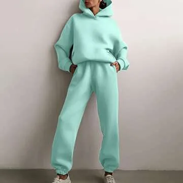 NaRHbrg Womens's Casual Hooded and Pants Outfit Plain Jogger Sweatsuit 2 Piece Sweatshirts Long Sleeve Lounge Sets Tracksuit Green