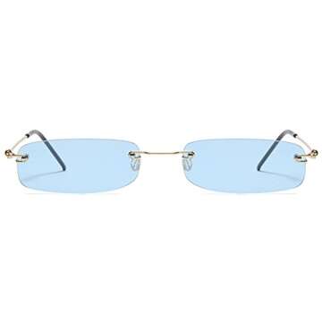 Narrow Sunglasses Tiny Rectangle Rimless Sun Glasses Unisex (clear blue)
