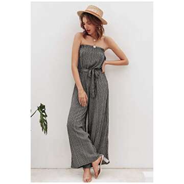 Narspeer Women's Summer Wide Leg Jumpsuit Casual Printed Strapless Loose Fit Striped One Piece Long Romper Pants Black S