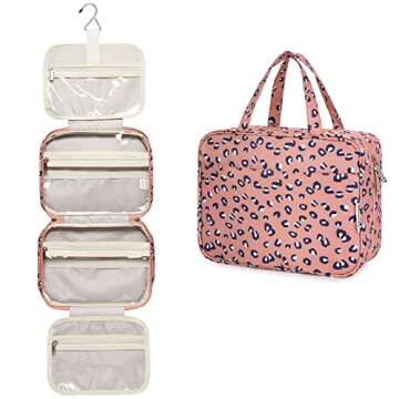Narwey Large Hanging Toiletry Bag for Travel and Makeup Organizing in Leopard