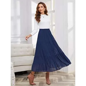 Show moreIntroducing the NASHALYLY Women's Chiffon Elastic High Waist Pleated A-Line Flared Maxi Skirt, a stunning addition to your wardrobe that combines comfort, style, and versatility. Available in a lovely blue hue, this size Large skirt is designed to accentuate your silhouette while providing ultimate ease of wear, thanks to its elastic waistband that caters to various body shapes and sizes. Crafted from 100% chiffon, its high-quality material is not only breathable but also offers a flattering drape that flows gracefully with every step you take. Ideal for a myriad of occasions—from summer parties to beach vacations—this skirt is sure to elevate your fashion sense and confidence.