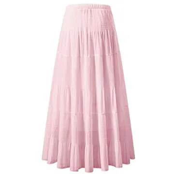 NASHALYLY Women's Chiffon Elastic High Waist Pleated A-Line Flared Maxi Skirts(Baby Pink-146,S)