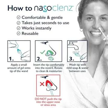 Show more Experience unparalleled nasal care with the NasoClenz Nasal Cleansing Kit, designed to offer an innovative approach to nasal hygiene. This remarkable product features four reusable wands, capable of being used up to 50 times, paired with a 5 ml antiseptic moisturizing gel that is both germ-reducing and soothing. Unlike traditional saline rinses or sprays, NasoClenz provides instant relief for allergy sufferers and those seeking a comfortable nasal decongestant option.