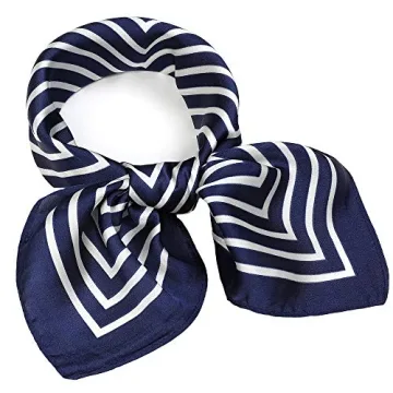 NaSoPerfect Silk Like Scarf Square Handkerchief Satin Ribbon Stripe Neck Scarfs for Women Navy 21" x 21"