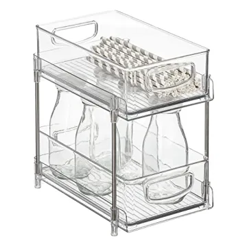 This versatile organizer measures 10 x 7.05 x 10.23 inches and features two open bins, perfect for categorizing your kitchen items. Whether it’s condiments, spices, or small snacks, each bin effortlessly slides out, providing immediate access to your essentials. Thanks to its transparent design, you won’t waste time rummaging through drawers searching for that elusive ingredient.