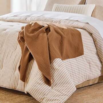 Nate Home by Nate Berkus Lightweight Cotton Washed Gauze Textured Weave Throw Blanket | Breathable, All-Season Decoration for Bedding from mDesign - Bronze (Brown)