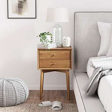 Introducing the Nathan James 32704 Harper Mid-Century Oak Wood Nightstand, a stunning blend of style, functionality, and affordability. Designed with a sleek profile and eye-catching angled face, this nightstand stands out in any setting. With two spacious drawers, it offers ample storage for all your essentials, from gadgets to books, while its vintage gold and brass accents elevate its elegance. Whether it serves as a bedside companion or an end table in your living room,...