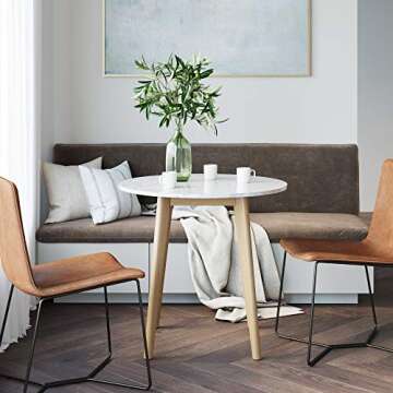 Nathan James Amalia Round Bistro Dining Table with Legs in Tan Wood Finish and Faux White Carrara Marble Top, Light Brown
