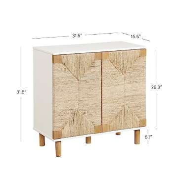 Show moreIntroducing the Nathan James Beacon Accent Natural Sideboard Storage Cabinet, a beautifully designed piece that seamlessly blends functionality and style. With its minimalist white finish and stunning natural seagrass doors, this cabinet embodies a boho-chic aesthetic that enhances any space while providing essential storage. The Beacon's unique look is perfect for those who appreciate both modern and coastal design elements, ensuring it fits effortlessly into your hallway, living room, or dining room. Plus, the adjustable interior shelf allows you to customize the storage space according to your needs, making it as practical as it is stylish.