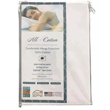 Show moreDiscover the ultimate in sleep protection with the National Allergy Standard 2 Pack Pillow Protector. Designed with your health and comfort in mind, these pillow protectors feature a fully zipped enclosure and an auto-locking zipper that ensures comprehensive coverage, keeping allergens at bay while you sleep. Say goodbye to worries about dust mites, mold, and pet dander! Made from 100% breathable cotton, these protectors are expertly woven to create a super-tight fabric that allows air to circulate freely, ensuring you enjoy a cool and comfortable night's sleep without compromising on safety.