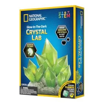 Show more Introduce your child to the fascinating world of science with the GLOWING CRYSTALS kit from National Geographic. This interactive educational kit is designed to engage curious minds, offering a hands-on opportunity to grow amazing crystals that glow in the dark! Imagine the delight on your child's face as they watch their very own creations emerge and illuminate the darkness. This science kit is not only a fun activity but also a gateway to explore the wonders of chemistry and geology.