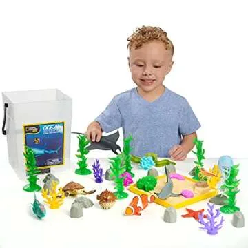 National Geographic Kids Tub of Realistic Sea Animal Toy Figures, Recycled Packaging, Storage Container, Kids Toys for Ages 3 Up, Amazon Exclusive