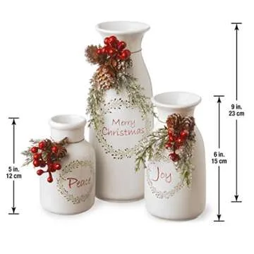 National Tree Company Pre-lit Artificial Christmas 3-Piece Decor Set | Flocked with Mixed Decorations | Ceramic White Bottles