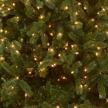 National Tree Company Pre-Lit 'Feel Real' Artificial Full Downswept Christmas Tree, Green, Douglas Fir, White Lights, Includes Stand, 7.5 feet