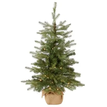 Show moreIntroducing the Nordic Spruce Mini Pre-Lit Artificial Christmas Tree by National Tree Company – your ideal companion for festive decorating! Standing at 3 feet tall with a 25-inch base diameter, this adorable yet impressive tree brings a lifelike feel to your holiday celebrations. Crafted with hundreds of individually crafted branch tips, its full-bodied appearance is guaranteed to enhance your home’s holiday charm. Adorned with 50 dazzling white lights, this tree shines brightly, illuminating your space even if one bulb goes out, making it a reliable choice for your festivities. Say goodbye to tedious setups; this tree arrives with lights pre-strung, making your decorating process seamless and enjoyable!