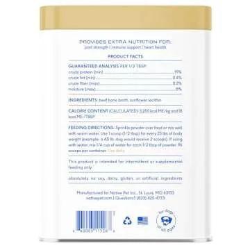 Native Pet Beef Bone Broth Powder for Dogs & Cats, 9.5 oz - Pet Gravy Food Topper for Picky Eaters – Cat & Dog Bone Broth Powder - Protein Rich Pet Food Supplement & Collagen Source