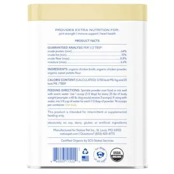 Native Pet Chicken Bone Broth Powder for Dogs & Cats, 11.5 oz - Pet Gravy Food Topper for Picky Eaters – Cat & Dog Bone Broth Powder - Protein Rich Pet Food Supplement & Collagen Source