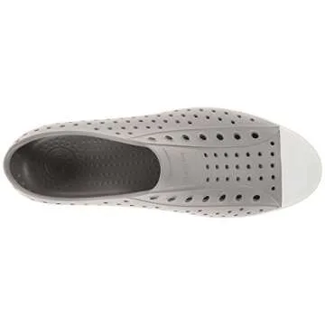 Show moreStep into unparalleled comfort and style with the Native Shoes Jefferson in Pigeon Grey/Shell White. This modern, slip-on shoe is not just a practical choice; it embodies a lifestyle of carefreeness and joy. Designed with lightness in mind, the Jefferson's EVA upper boasts all-over perforations, ensuring your feet stay cool and breathe easily, even on the hottest summer days. Weighing almost nothing, you’ll forget you’re even wearing them. They seamlessly combine functionality with imagination, available in a fantastic array of colors designed to suit your personal style.