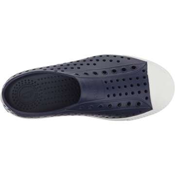 Show moreIntroducing the Native Shoes - Jefferson Child in a stunning Regatta Blue/Shell White colorway, designed specifically with your child’s comfort and play in mind. This slip-on shoe is crafted from an ultra-lightweight EVA upper, ensuring that every step your child takes is feather-light yet durable enough for even the wildest adventures. With its all-over perforations, the Jefferson not only offers a breathable experience but also keeps little feet fresh and comfortable during playtime.