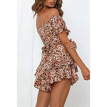 Natsuki Women Off Shoulder Short Sleeve Jumpsuit Frill Ruffle Floral Romper M M004