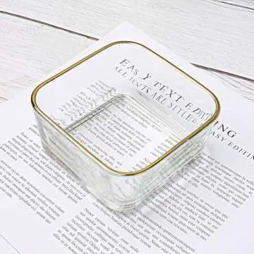 NatSumeBasics Clear Paper Clip Holder Glass Bowl with Gold Rim Square Paper Clips Dispenser Colorful Paperclips Elegant Desk Organizer Accessories (Clear)