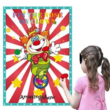 NATUOPPC Circus Party Game, Pin The Noses on The Clown, Large Poster with 24PCS Nose Stickers & 8PCS Glue Dots, Kid's Party Game