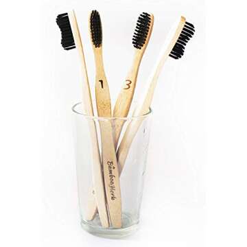 Natural Bamboo Charcoal Infused Toothbrush with BPA Free Nylon Bristles, Individually Numbered - Eco-Friendly- Sustainable & 100% Natural Organic Biodegradable - Pack Of 4
