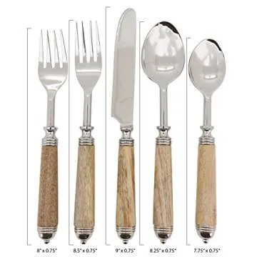 Natural Bark Wood Style Handle Place Setting Flatware (Set of 5)