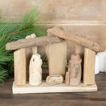 Show moreIntroduce a touch of seaside charm to your holiday celebrations with the Natural Driftwood Nativity Display. Crafted with love and attention to detail, this rustic Christmas decoration measures 7-1/2 inches wide by 5-1/2 inches high, making it the perfect fit for any mantel or table setting. The serene, beach-themed design features driftwood elements that encapsulate the essence of coastal living. Whether placed amongst your Christmas lights or as a standalone centerpiece, this nativity display will certainly evoke warm holiday nostalgia while celebrating the spirit of Christmas.