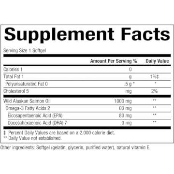 Show moreDiscover the exceptional health benefits of the Natural Factors Wild Alaskan Salmon Oil. Each softgel delivers the power of omega-3 essential fatty acids, including EPA and DHA, derived from pristine wild Alaskan salmon. This premium supplement is designed to support your heart and brain health while promoting overall well-being. Sourced from sustainably harvested salmon, it is rigorously tested for purity and potency, ensuring you receive only the best. With the inclusion of vitamin D, it not only supports cognitive functions but also strengthens your immune system and bone health, making it a comprehensive dietary solution.