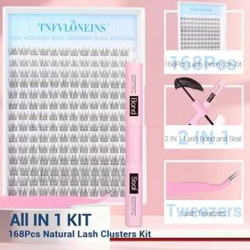 Natural Lash Extension Kit 168Pcs Lash Clusters Kit Wispy Eyelash Extensions 9-12MM Individual Lashes Extensions with Bond and Seal Lash Glue and Eyelash Extension Tweezers DIY at Home by TNFVLONEINS