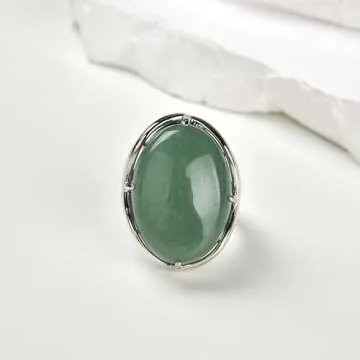 Natural Stone Rose Quartz Agate Amethyst Turquoise Adjustable Finger Rings Semi Precious Oval Shaped Gemstone Anniversary (Green Aventurine)