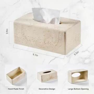 Natural Travertine Textures Tissue Box Cover Rectangular for Home Decor,Resin Heavy Tissue Box Holder for Bathroom Countertop,Tabletop,Bedside Table,Office