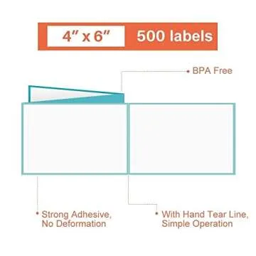 NATURALABEL 500 Labels 4" x 6" Direct Thermal Labels, Fanfold Shipping Labels with Perforated Line