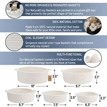 Show more Transform your space into a clutter-free haven with our exquisite set of woven storage baskets, designed meticulously for the modern lifestyle. Unlike other brands that deliver deformed baskets, our product ensures you receive five perfectly shaped containers straight out of the box. No more dealing with those embarrassing floppy baskets that fail to hold their own shape! With our unique packaging, your organization journey just got much more stylish and enjoyable.