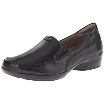 Show moreStep into effortless style and unparalleled comfort with the Naturalizer Women's Channing Slip-On Loafer. Designed for the modern woman on the go, this black loafer combines smooth leather and innovative comfort features to create the perfect footwear for both busy workdays and casual outings. The stretch goring insets ensure a snug fit that adapts to your foot shape, while the comfort system footbed cushions each step, providing all-day support without sacrificing style. Slip these loafers on with ease and showcase your chic yet professional look effortlessly!