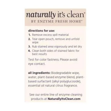 Naturally It's Clean Stain Eraser, Natural Enzymes Based/Biodegradable Instant Stain Removal, Spot Wipe Removes Wine, Coffee, Soda, Spills, Odor on Clothes, Bags, 60 Count (Pack of 1)