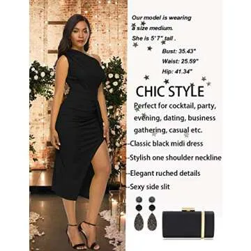 Nature Comfy LilyIn Womens Elegant one Shoulder Sleeveless Ruched High Slit Solid Color Cocktail Party Dresses (Classic Solid Black, Large)