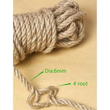 Nature Hemp Rope,1/4inch Heavy Duty Jute Twine for Cat Tree and Tower, DIY Scratcher Scratching Post Replacement, Pad, Crafts Gardening Hammock Home Decorating(33FT)