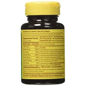 Show moreDiscover the incredible benefits of Nature Made B-100 Complex Time Release Tablets, designed specifically to boost your energy levels and support your overall well-being. This powerful formula combines seven essential B vitamins along with over 100% of the daily value of Folic Acid, making it a crucial ally for those seeking to enhance their cellular energy production and maintain a healthy nervous system functionality. With each bottle containing 60 tablets, you get a generous 180-day supply to support your daily wellness routine.
