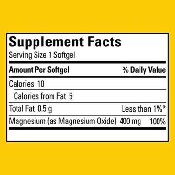 As a product that prioritizes purity, Nature Made guarantees that its magnesium formula is free from artificial colors, flavors, and preservatives. Additionally, there are no chemical solvents, yeast, starch, or gluten, making it a reliable choice for those with dietary restrictions or sensitivities. Take one softgel daily to keep your magnesium levels optimized, supporting your daily needs.