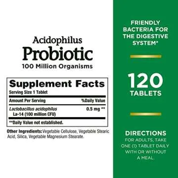 Nature's Bounty Acidophilus Probiotic, Daily Probiotic Supplement, Supports Digestive Health, 1 Pack, 120 Tablets