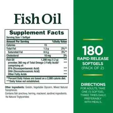 Nature’s Bounty Fish Oil 1200 mg, Supports Heart Health With Omega 3 EPA & DHA, 360 Rapid Release Softgels, Twin Pack