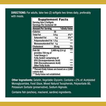 Nature's Bounty Fish Oil, 1200mg, 360mg of Omega-3, 60 Odorless Softgels (Packaging May Vary)