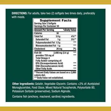 Embrace a healthier lifestyle as you work towards maintaining triglyceride levels already within the normal range. Each serving delivers a robust 600 mg total of EPA, DHA, and other omega-3 fatty acids, which may even help reduce the risk of coronary heart disease, according to supportive research. Whether you're an athlete at the peak of performance, or simply looking to enhance your nutritional intake, these softgels fit seamlessly into your regimen.