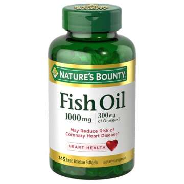 Embrace a healthier lifestyle with Nature's Bounty Fish Oil Softgels, designed specifically for those who prioritize heart health and wellness. Each softgel delivers an impressive 1000mg of fish oil, rich in essential Omega-3 fatty acids such as EPA and DHA, which are scientifically recognized for their cardiovascular support. Backed by a legacy of over 50 years in the wellness industry, Nature's Bounty guarantees quality and potency in every serving.