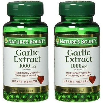 Nature's Bounty Garlic Extract 1000 mg Softgels for Cardiovascular Support,100 ea (Pack of 2)