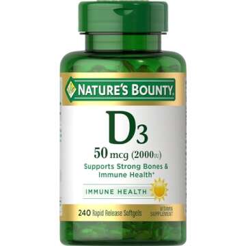 Nature's Bounty Vitamin D3, Immune and Bone Support, Vitamin Supplement, 2000IU, 240 Rapid Release Softgels