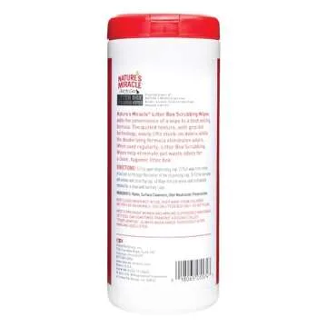 Show moreIntroducing the Nature's Miracle Just for Cats Litter Box Scrubbing Wipes, the ultimate cleaning solution designed specifically for cat owners who want to maintain a pristine and odor-free environment for their furry friends. Each pack contains 30 extra thick scrubbing dot wipes that are specially formulated to remove stubborn caked-on debris while being gentle on your pet. The plant-derived enzymatic odor control works wonders to eliminate tough litter box odors, ensuring your home remains fresh and inviting. Say goodbye to harsh chemicals; these wipes will not aggravate your cats and are safe for regular use around them.