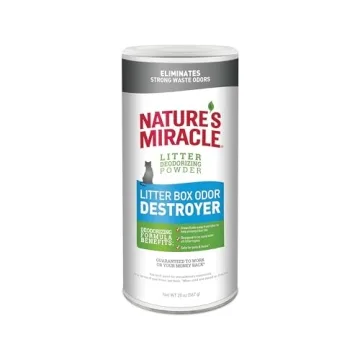 Show moreNature's Miracle Just for Cats Odor Destroyer Litter Powder is your go-to solution for maintaining a clean and fresh litter box, especially in homes with multiple cats. This 20 oz formula is designed specifically for cat owners who seek a way to address the common odors that accompany litter box use. Formulated with powerful odor-neutralizing ingredients, this product not only neutralizes waste odors but also enhances the clumping ability of various types of litter, including clay, corn, corn cob, and paper-based options. Plus, it’s safe for use around pets and the home when used as directed. Say goodbye to unpleasant smells and enjoy a cleaner environment for you and your furry friends!